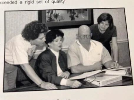 Beverly Schalon, Carolyn Sharp, and others at PPG. Found by Jim Rock in PPG memory book.